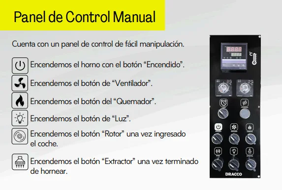 DRACCO R15 con quemador a Petróleo viene con capacidad superior de producción con un máximo de 1800 panes por hora , también tiene conexión a gas GNV / GLP y Petróleo. Se puede utilizar para hornear varios tipos de pan desde los más comerciales hasta los especiales , también puede hornear pasteles , galletas, panetones y muchos otros tipos de productos.